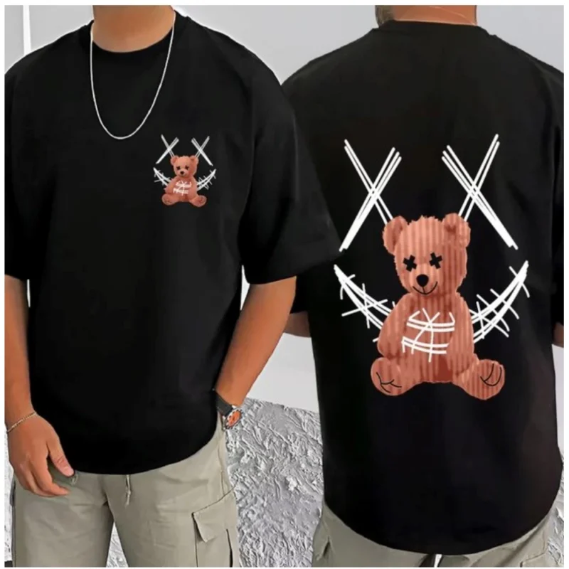 Men’s Casual Cotton Blend Printed Round Neck Half Sleeve T-Shirt (Black)
