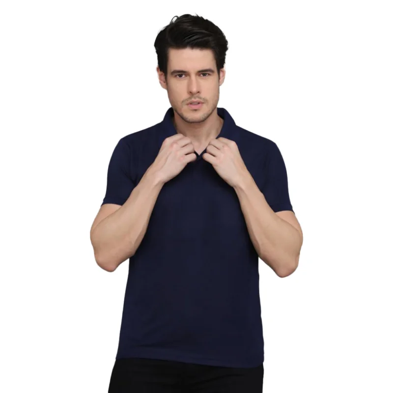 Men’s Casual Half Sleeve Solid Cotton Blended Polo Neck T-shirt