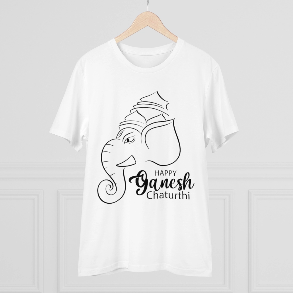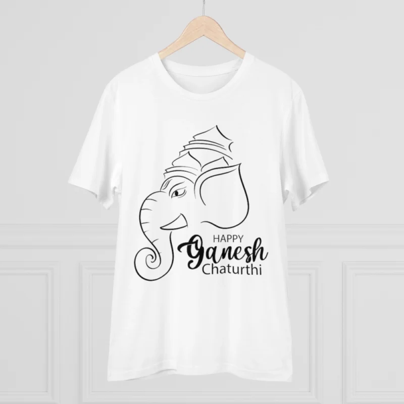 Men’s PC Cotton Ganesh Printed T Shirt (Color: White, Thread Count: 180GSM)