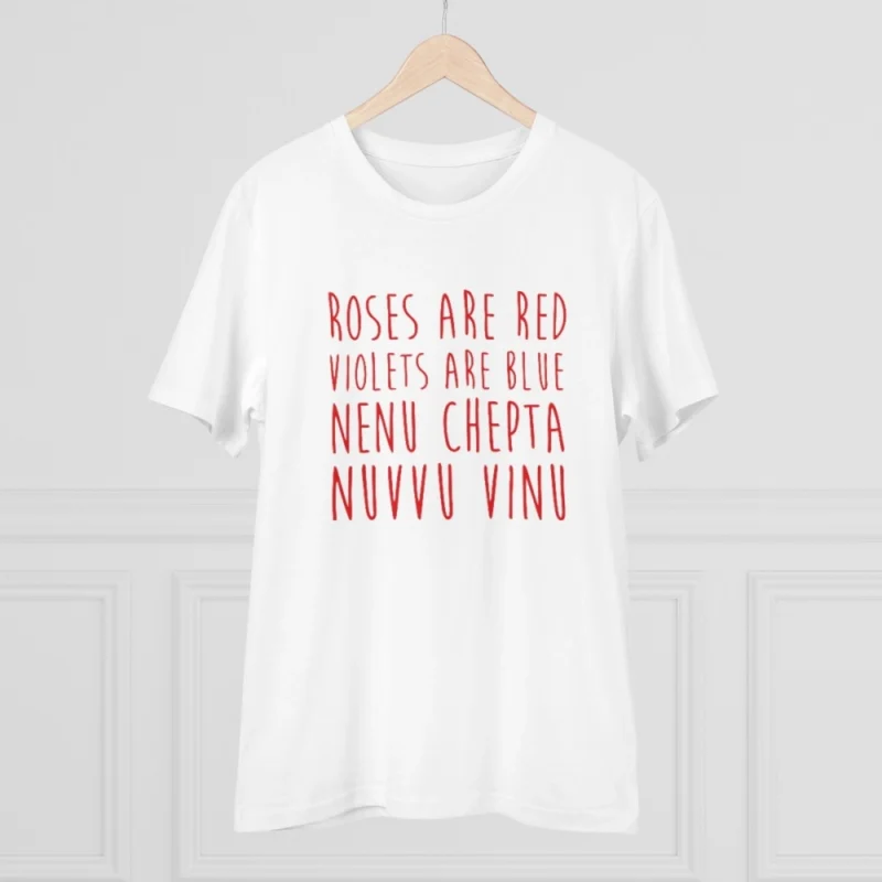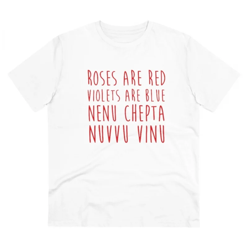 Men’s PC Cotton Telugu Desing Printed T Shirt (Color: White, Thread Count: 180GSM)