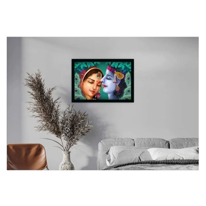 Radha Krishna Painting Vinyl Sparkle Coated with Synthetic Photo Frame
