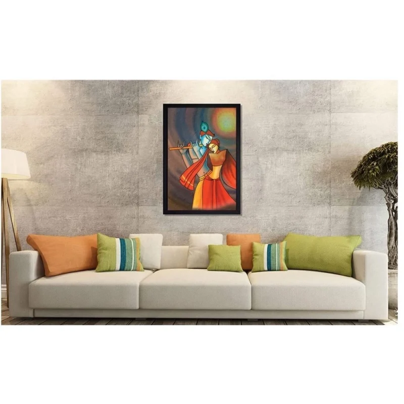 Radha Krishna Painting with Synthetic Photo Frame (Multicolor)