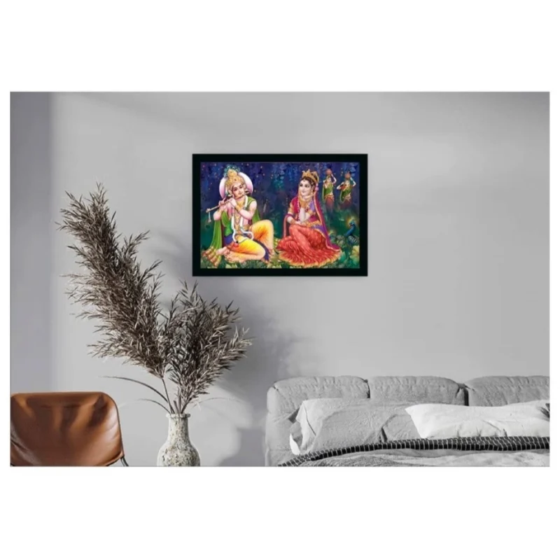 Radha Krishna Painting with Synthetic Photo Frame (Multicolor)