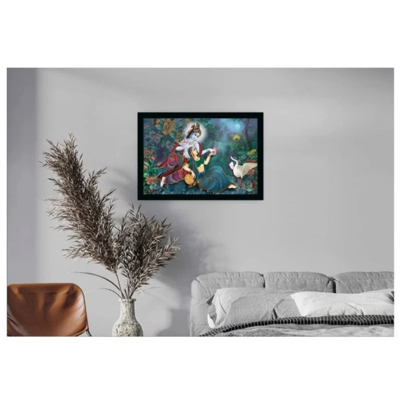Radha Krishna Painting with Synthetic Photo Frame (Multicolor)