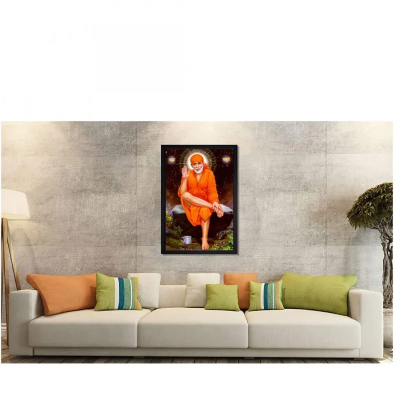 Saibaba Painting with Synthetic Photo Frame (Multicolor)