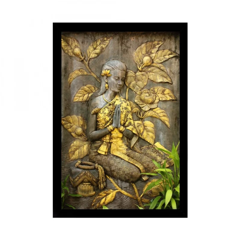 Welcome Lady Painting with Synthetic Photo Frame (Multicolor)