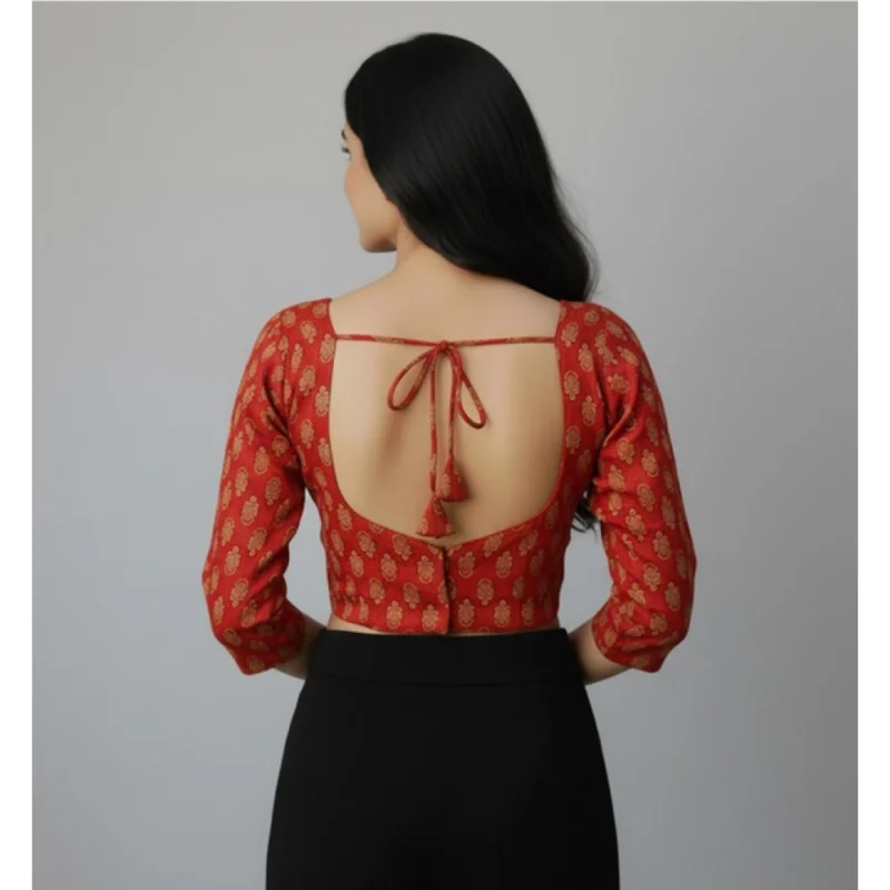Women’s Ajrakh Cotton Printed Halter Neck Padded Blouse (Red 38 Ready (Self Alterable 36–40)