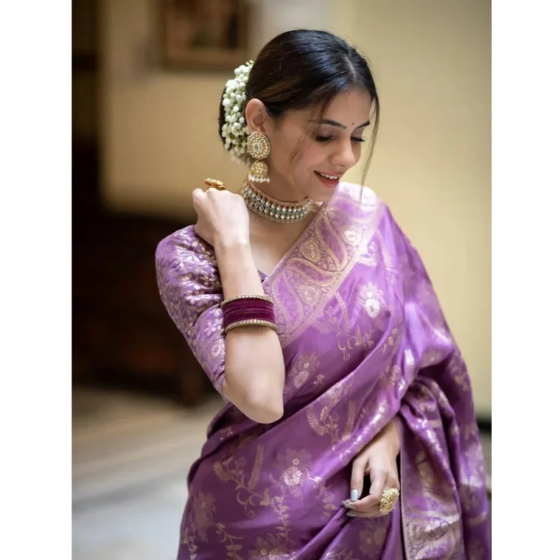 Women’s Art Silk Embellished Kanjivaram Saree With Unstitched Blouse 5.5Mtr