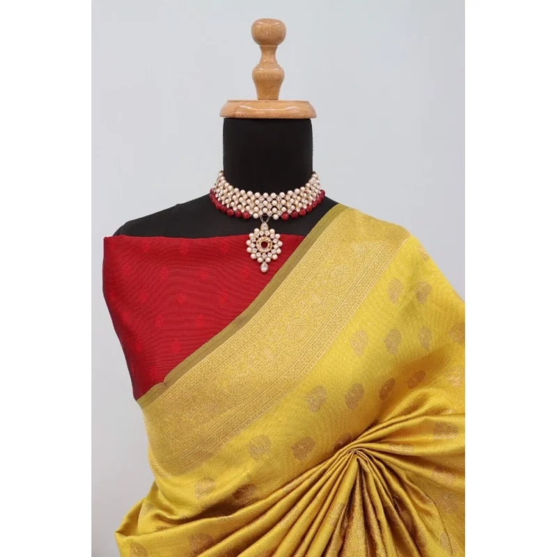 Women’s Banarasi Printed Saree With Unstitched Blouse 5.5Mtr (Yellow)
