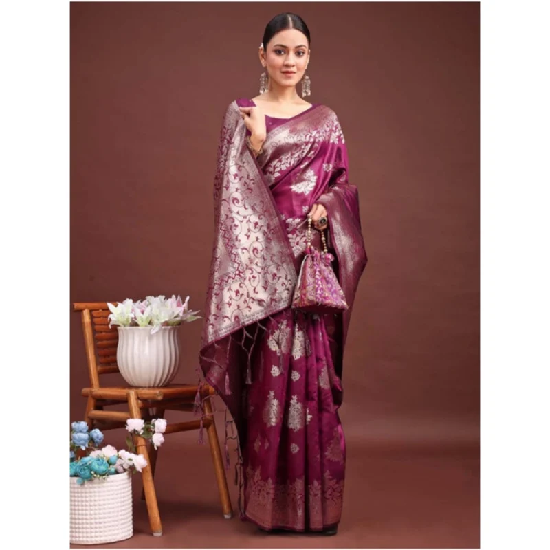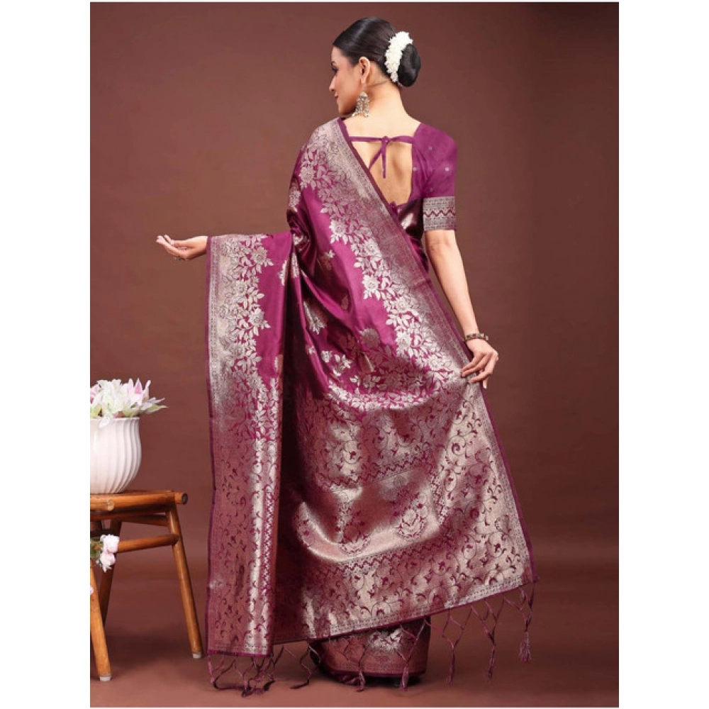 Women’s Banarasi Silk Printed Saree With Unstitched Blouse 5.5Mtr