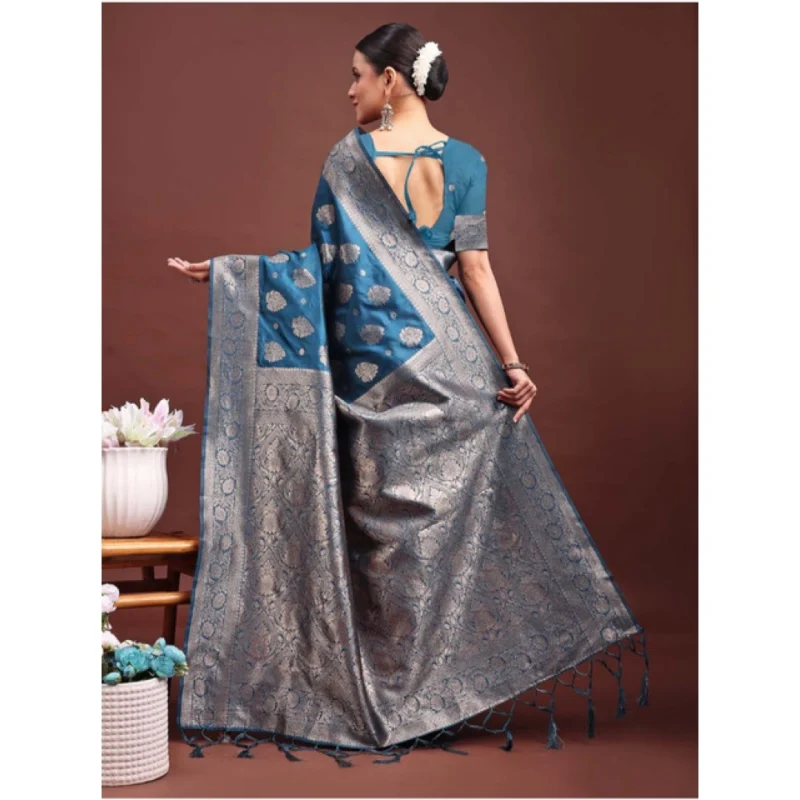 Women’s Banarasi Silk Printed Saree With Unstitched Blouse 5.5Mtr