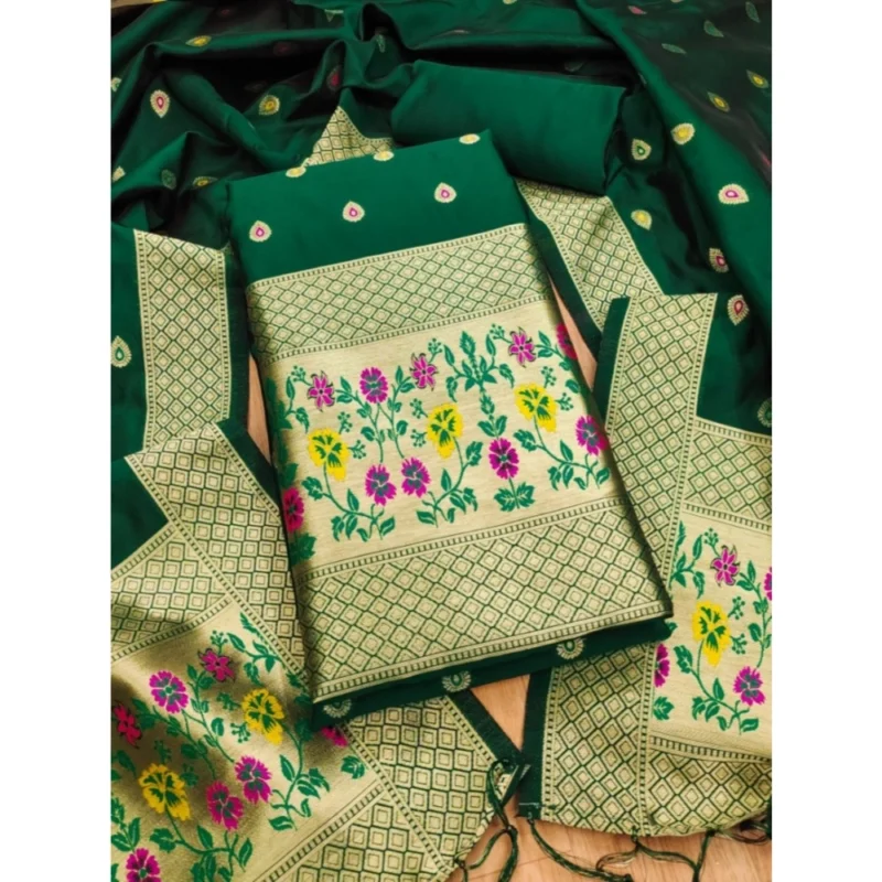 Women’s Banarasi Silk Printed Unstitched Salwar Suit Material With Dupatta