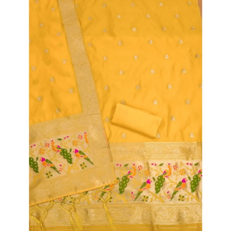 Women’s Banarasi Silk Printed Unstitched Salwar Suit Material With Dupatta