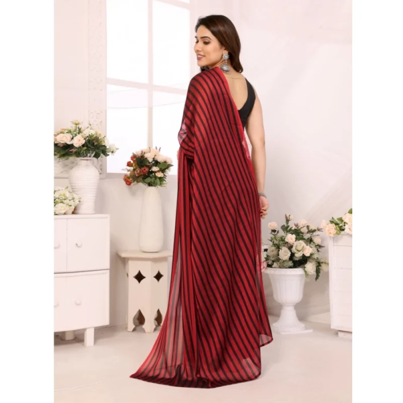 Women’s Black Berry Striped Ready-to-Wear Saree With Unstitched Blouse 5.5 Mtr (Red-Black)