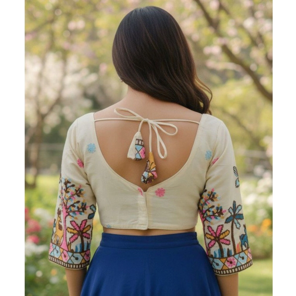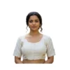 Women’s Cambric Cotton Round Neck Padded Blouse (White, 38 Ready Size (Self-Alterable 36–40)