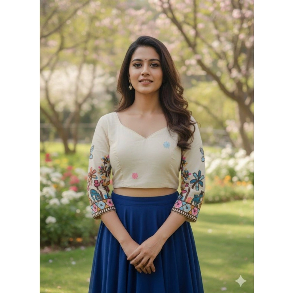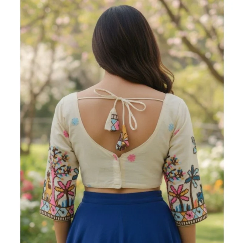 Women’s Cambric Cotton Round Neck Padded Blouse