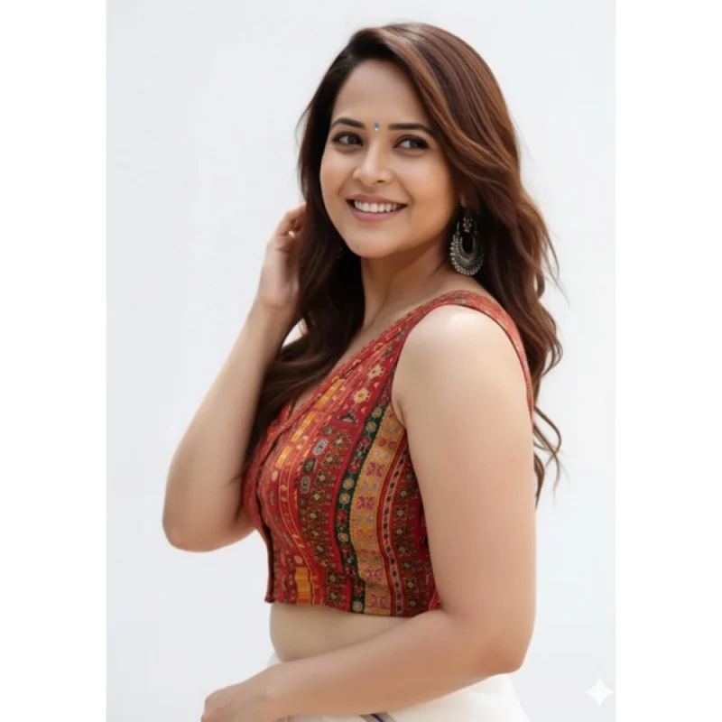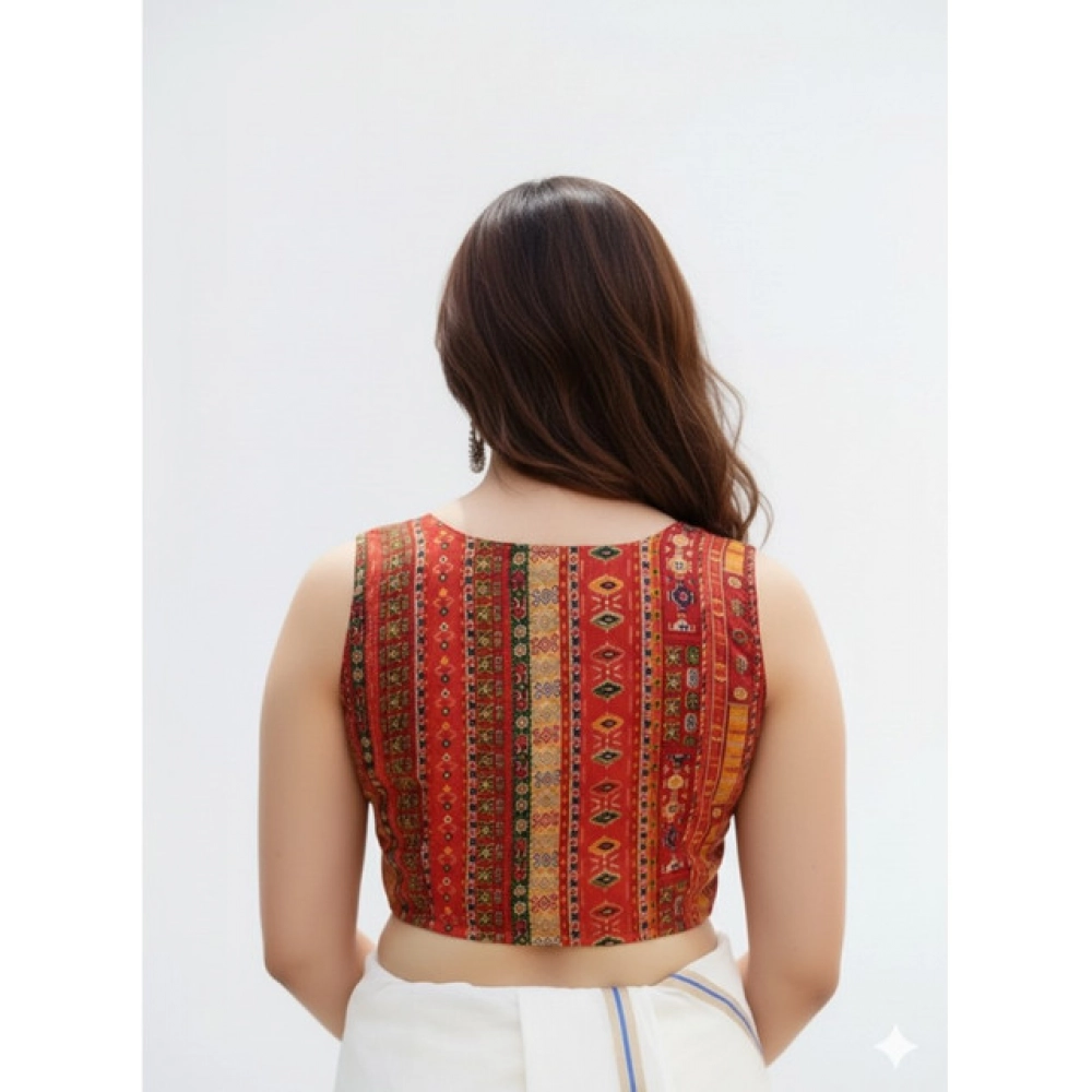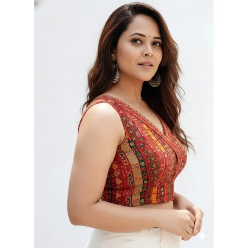 Women’s Cambric Cotton V Neck Padded Blouse (Red, 38 Ready Size (Self-Alterable 36–40)