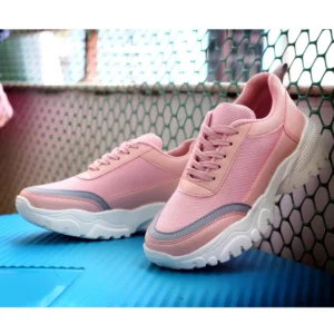 Women’s Casual Mesh Printed Lace-Ups Shoes (Pink)