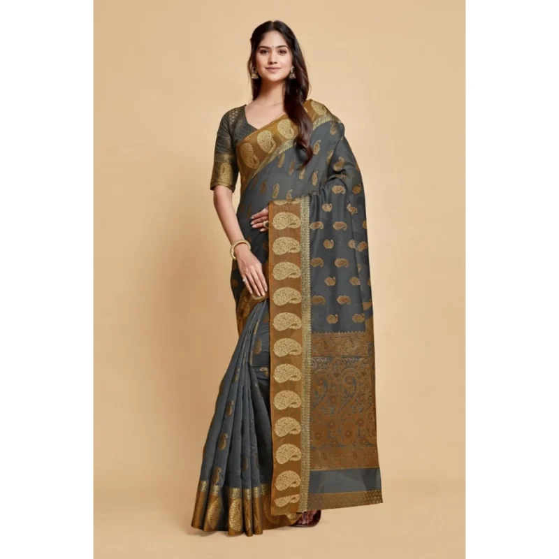 Women’s Chanderi Cotton Printed Saree With Unstitched Blouse