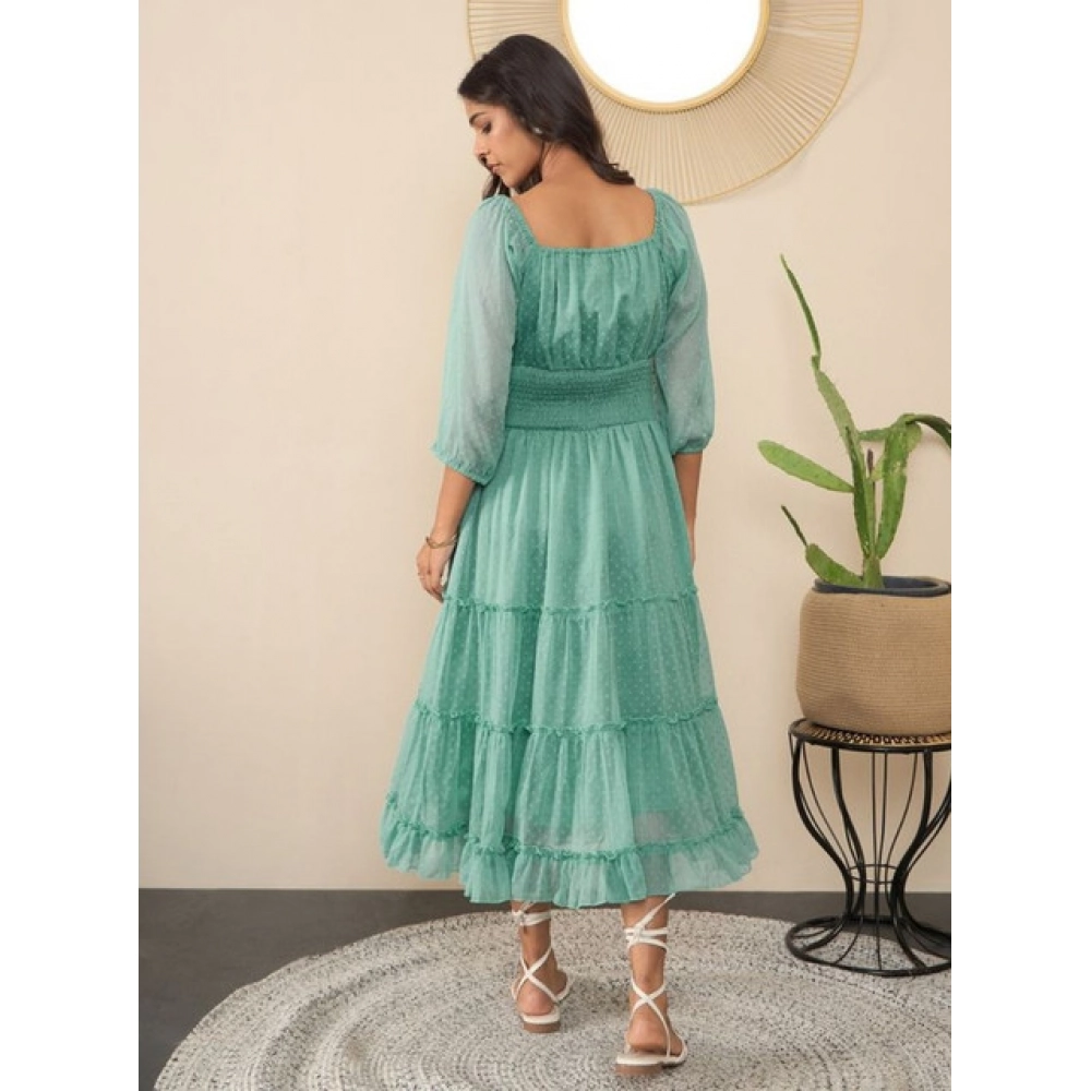 Women’s Chiffon Solid Puff Sleeve Dress