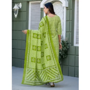 Women’s Cotton Blend Printed Kurti With Pant Dupatta Set (Parrot)