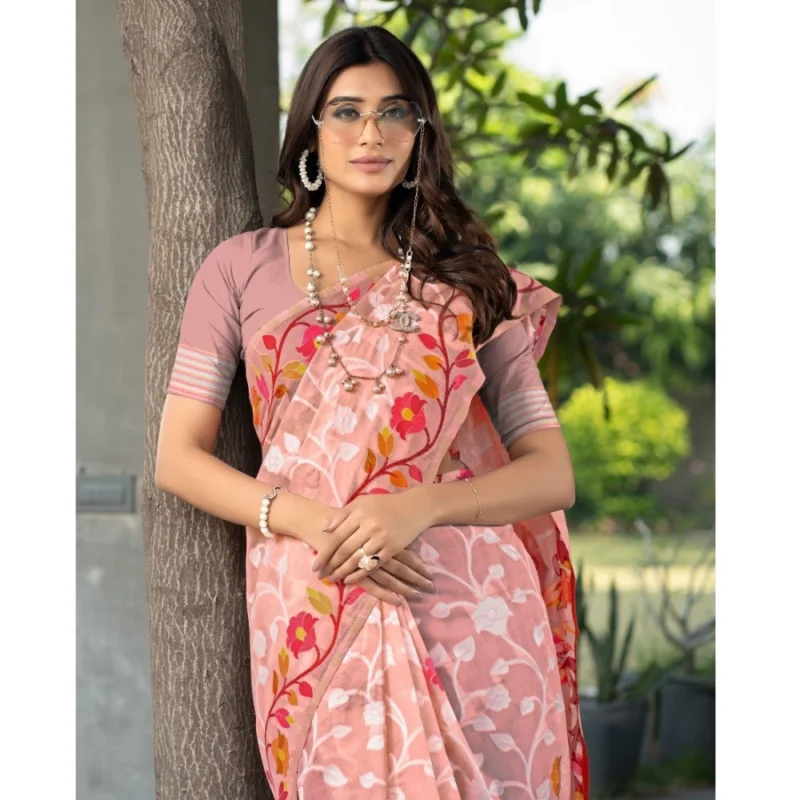 Women’s Cotton Printed Saree With Unstitched Blouse