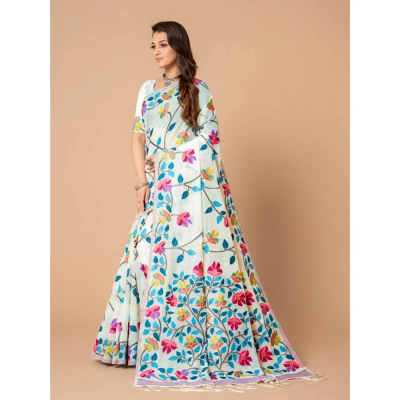 Women’s Cotton Printed Saree With Unstitched Blouse