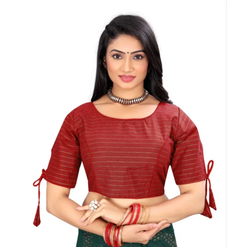 Women’s Cotton Thread Work Readymade Blouse (Red, Size: Free Size)