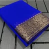Women’s Crepe Chit Pallu Solid Saree With Unstitched Blouse 5.5Mtr