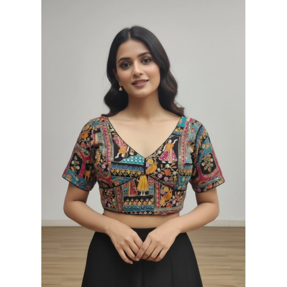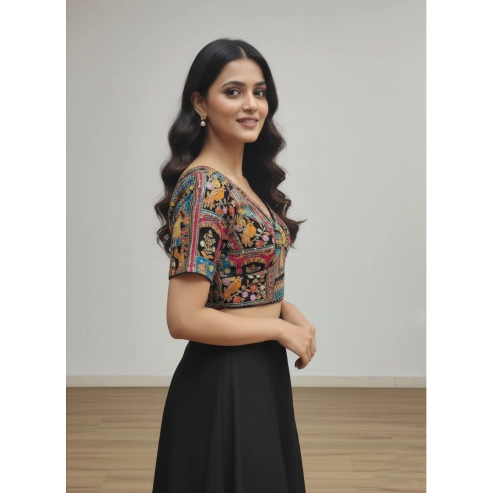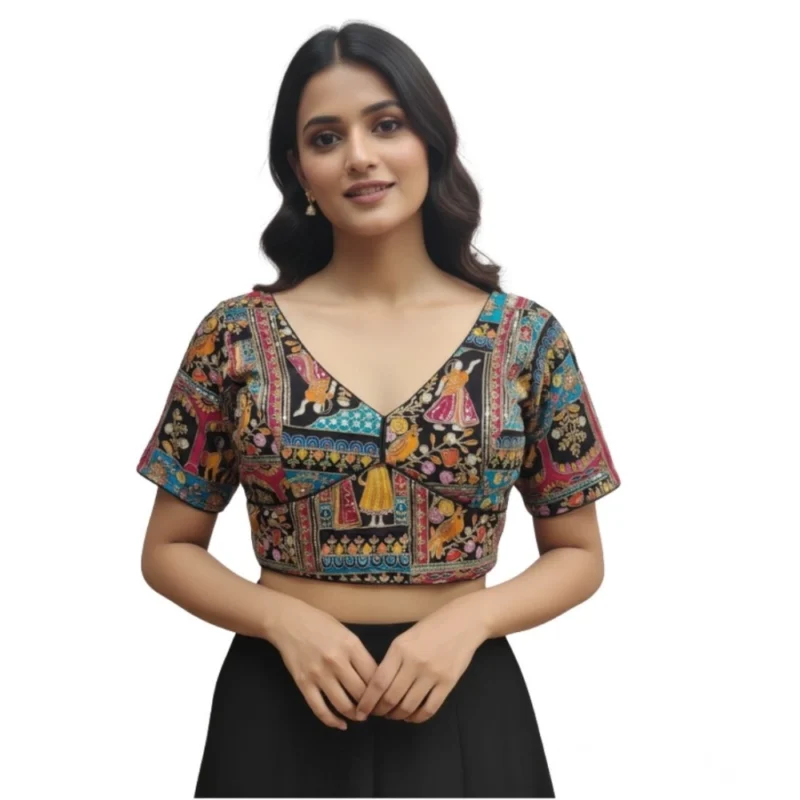 Women’s Crepe Position Print V Neck Short Sleeve Readymade Blouse