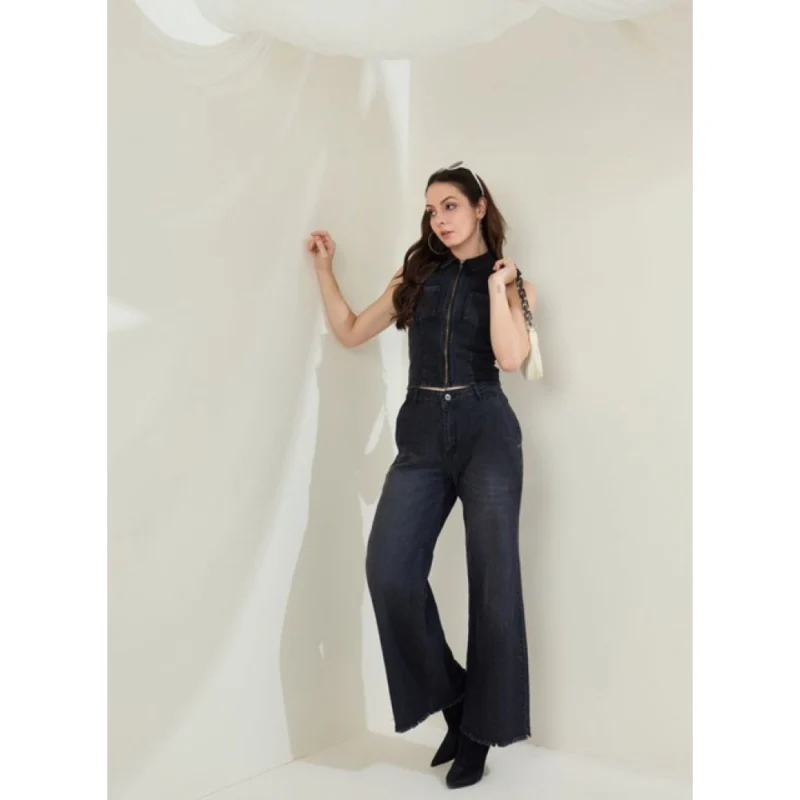 Women’s Denim Lycra Solid Sleeveless Top (Black)