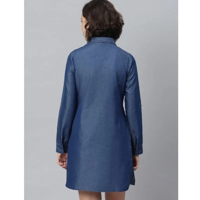Women’s Denim Solid Long Sleeves Above Knee Dress
