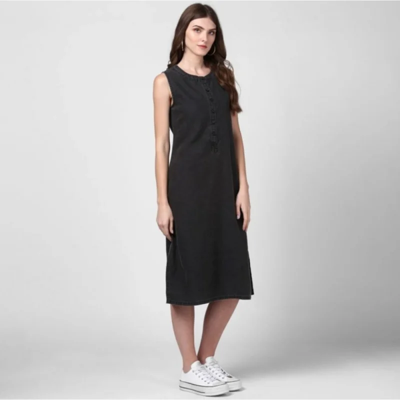 Women’s Denim Solid Sleeveless Dress