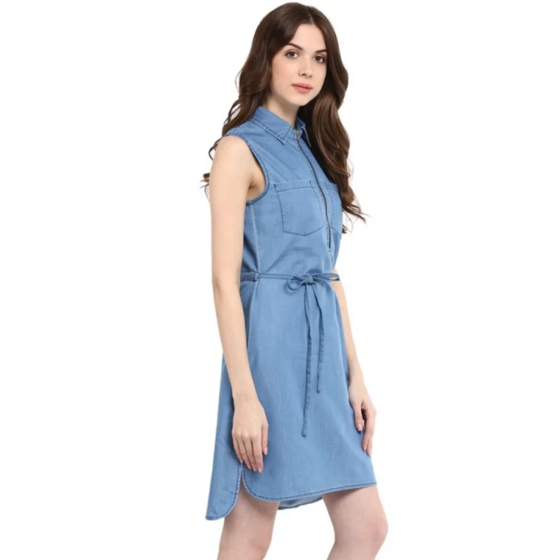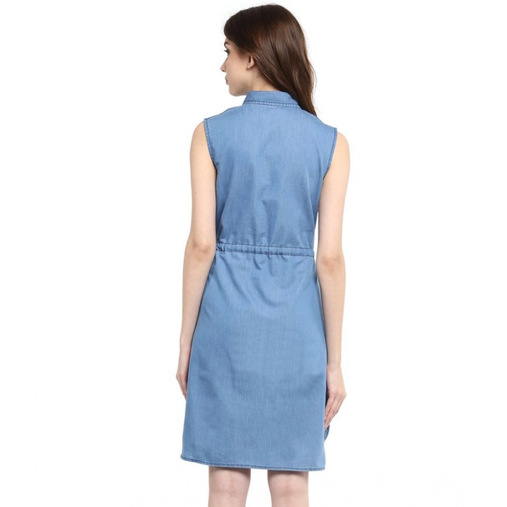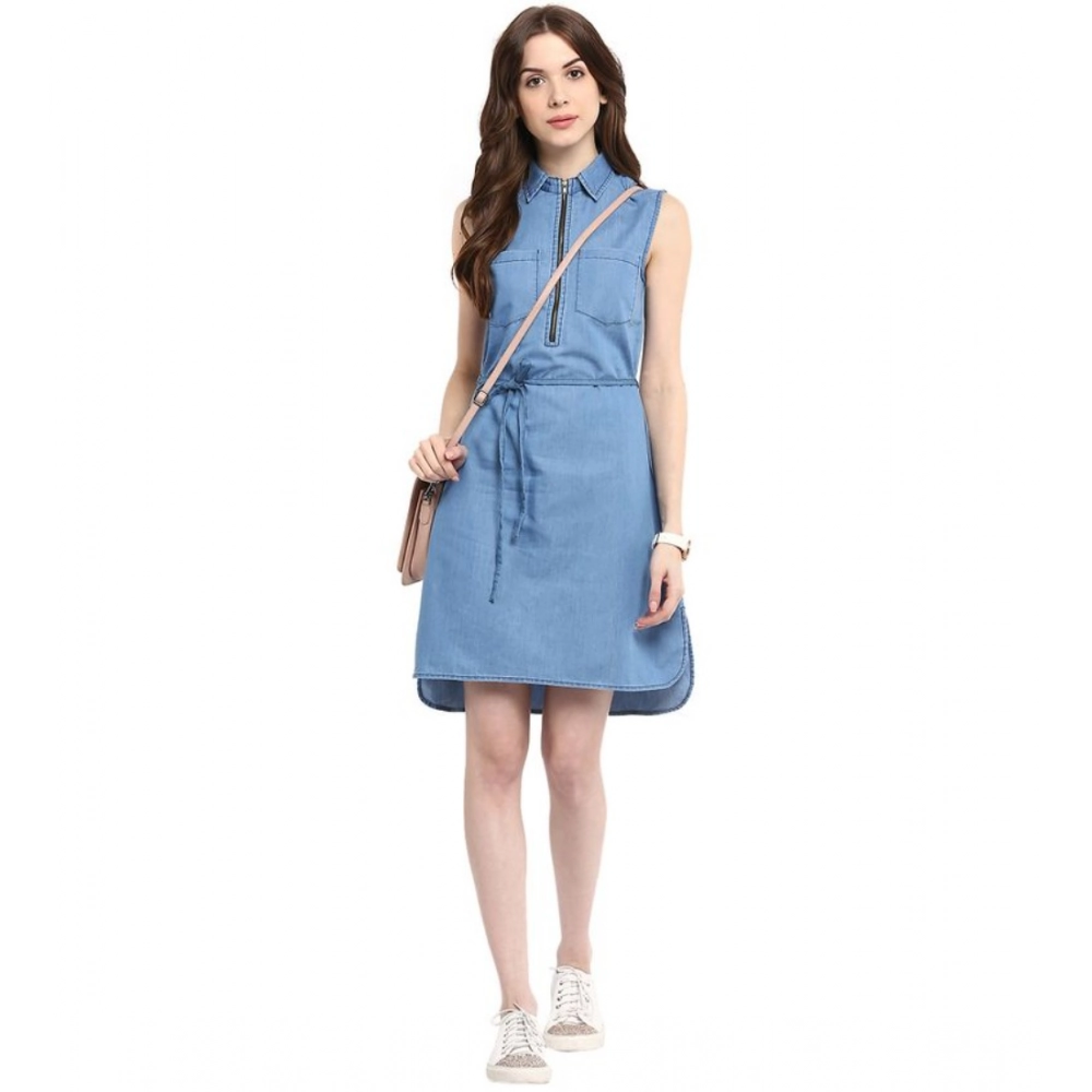 Women’s Denim Solid Sleeveless Dress