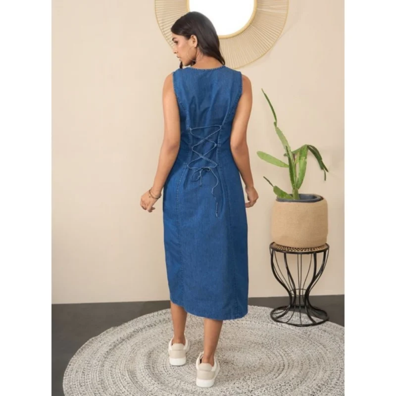 Women’s Denim Solid Sleeveless Dress