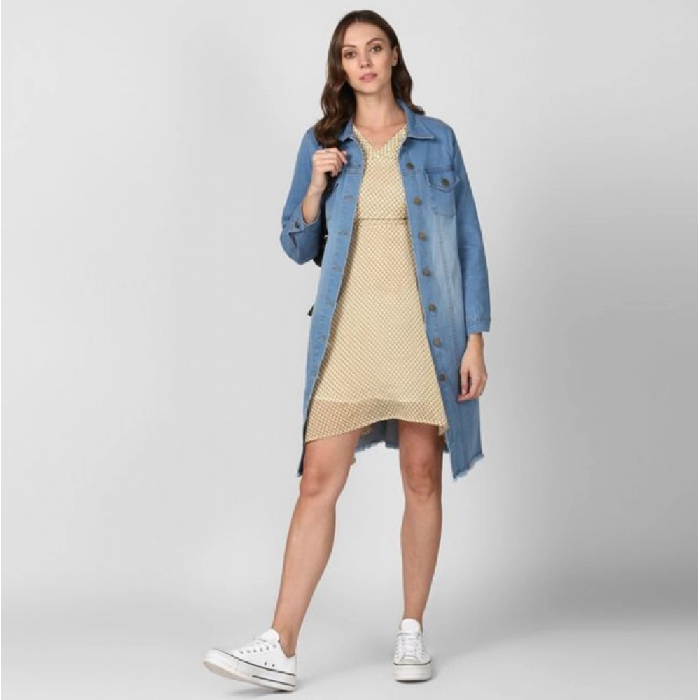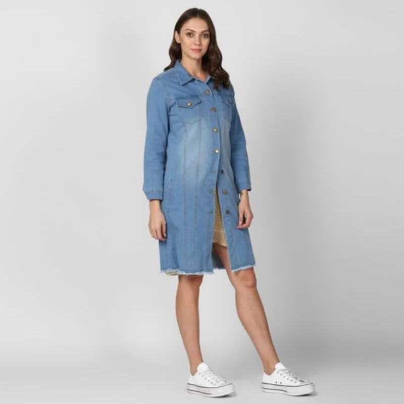 Women’s Denim Washed Long Sleeves Jacket (Blue)