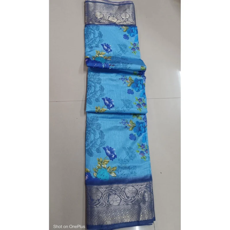Women’s Digital Dolla Silk Printed Saree With Unstitched Blouse 5.5Mtr (Sky Blue)