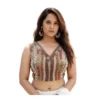 Women’s Erode Silk V Neck Padded Blouse (Beige, 38 Ready Size (Self-Alterable 36–40)