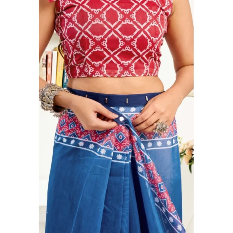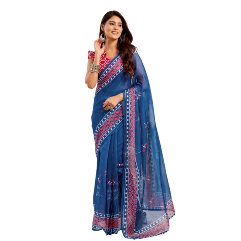 Women’s Faux Linen Floral Print Ready to wear Saree With Unstitched Blouse 5.5Mtr