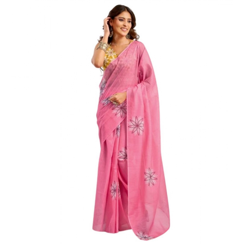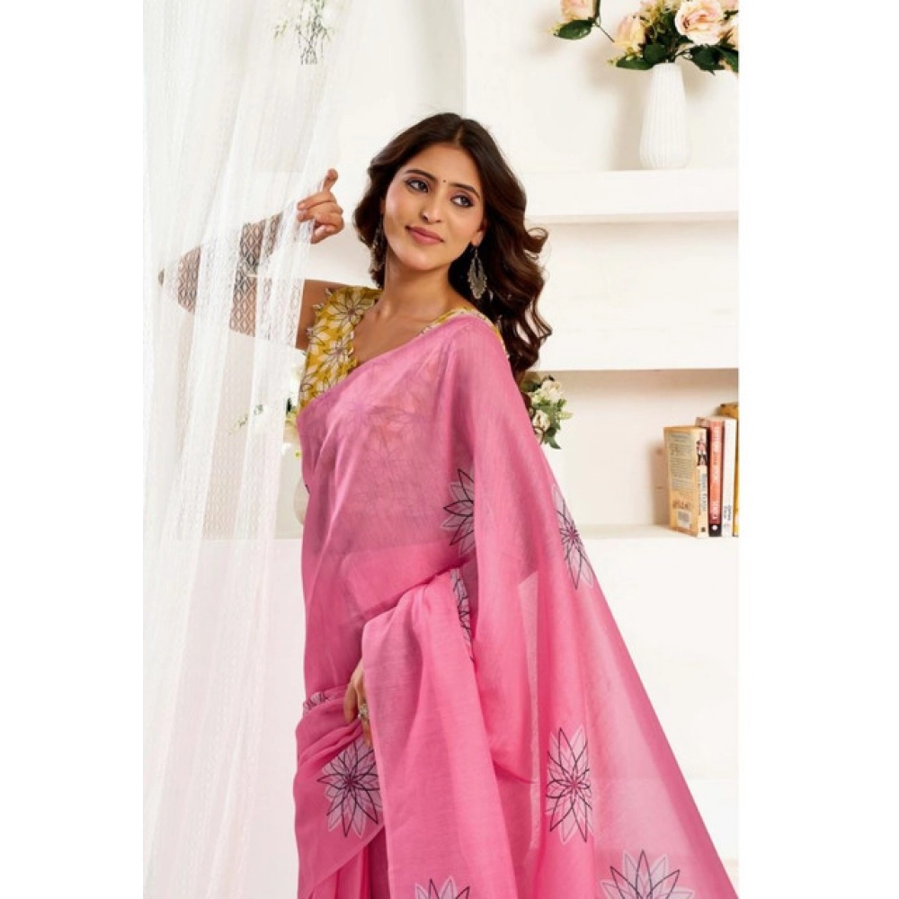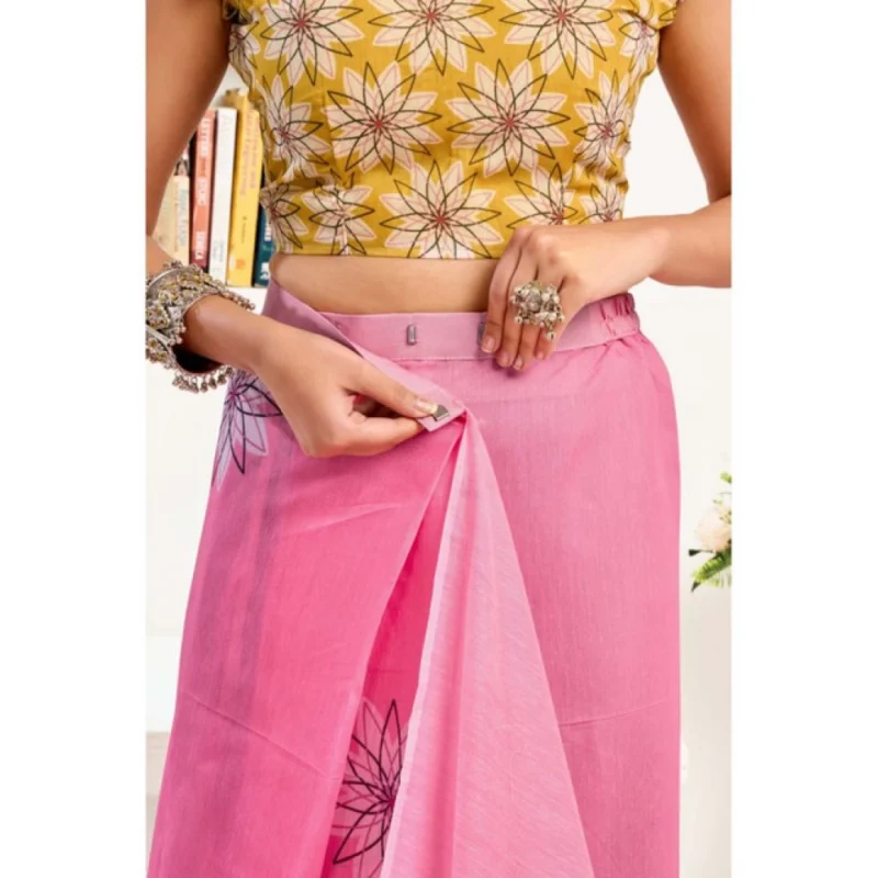 Women’s Faux Linen Floral Print Ready to wear Saree With Unstitched Blouse 5.5Mtr