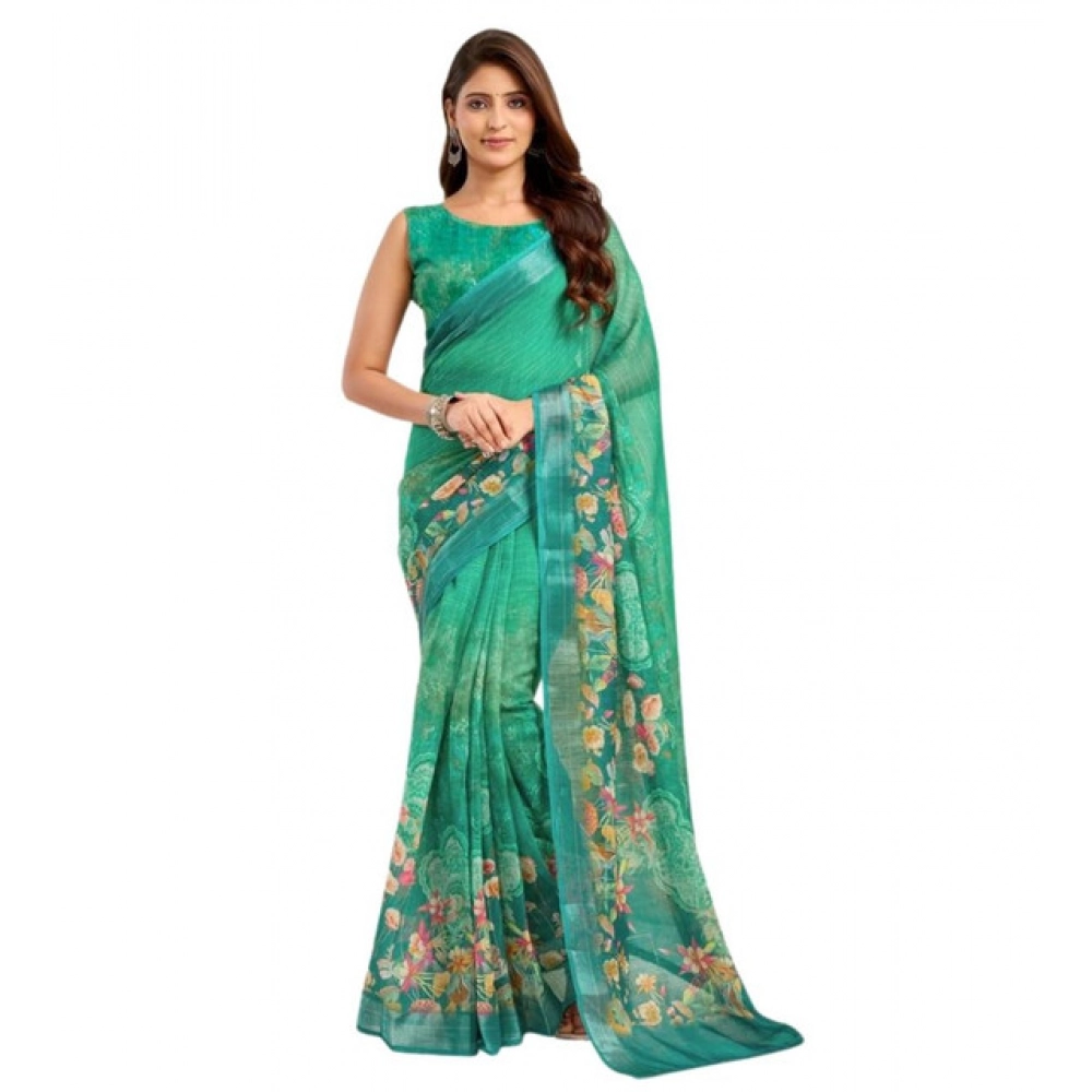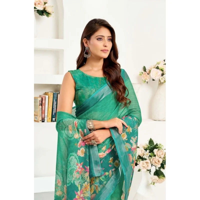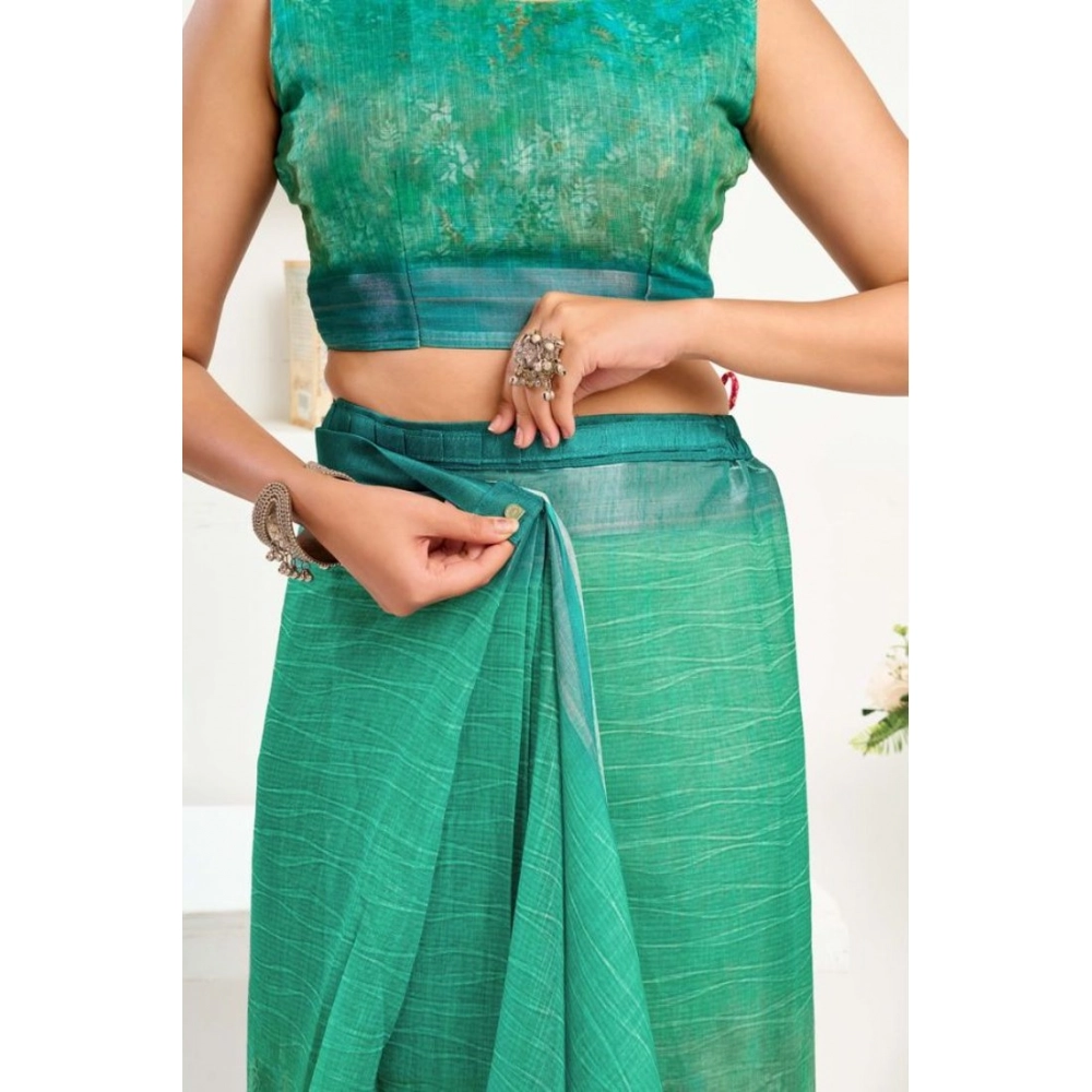 Women’s Faux Linen Floral Ready to wear Saree With Unstitched Blouse 5.5Mtr