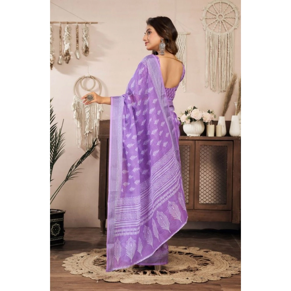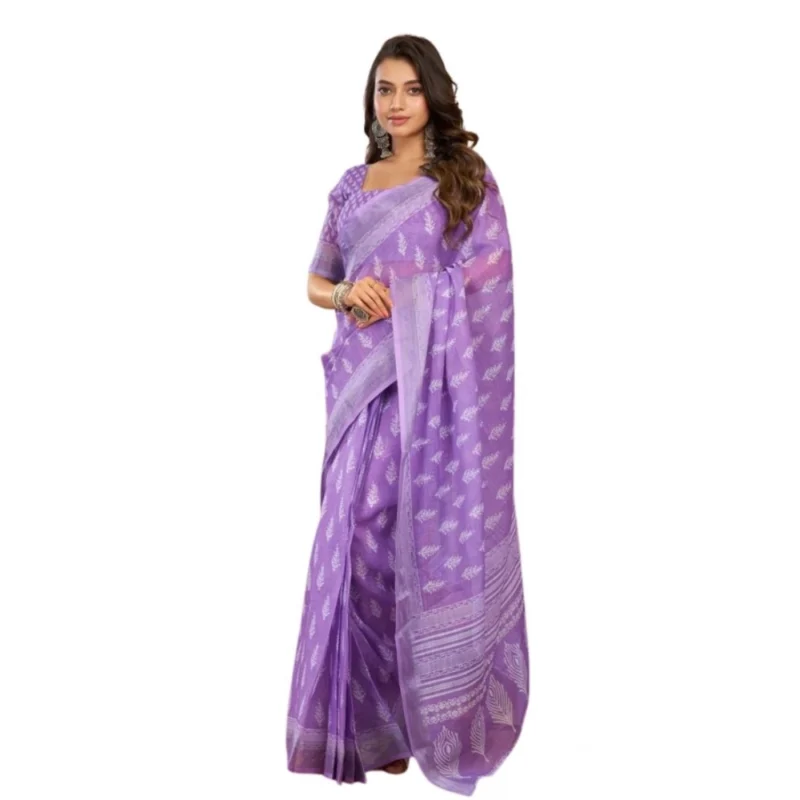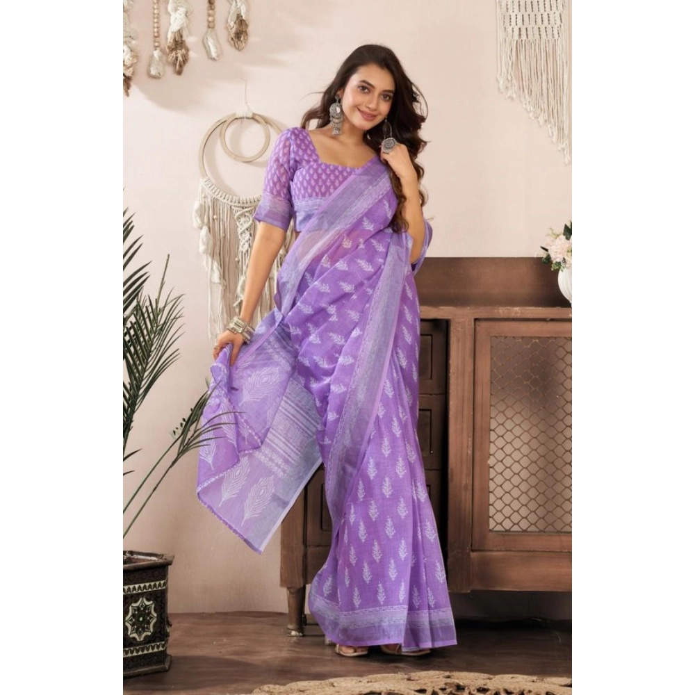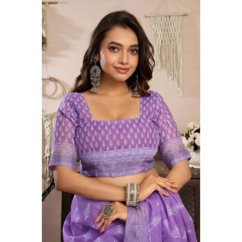 Women’s Faux Linen Floral Ready to wear Saree With Unstitched Blouse 5.5Mtr (Lavender)