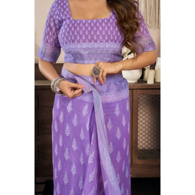 Women's Faux Linen Floral Ready to wear Saree With Unstitched Blouse 5.5Mtr (Lavender)