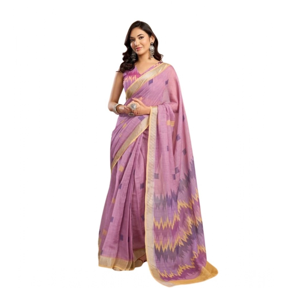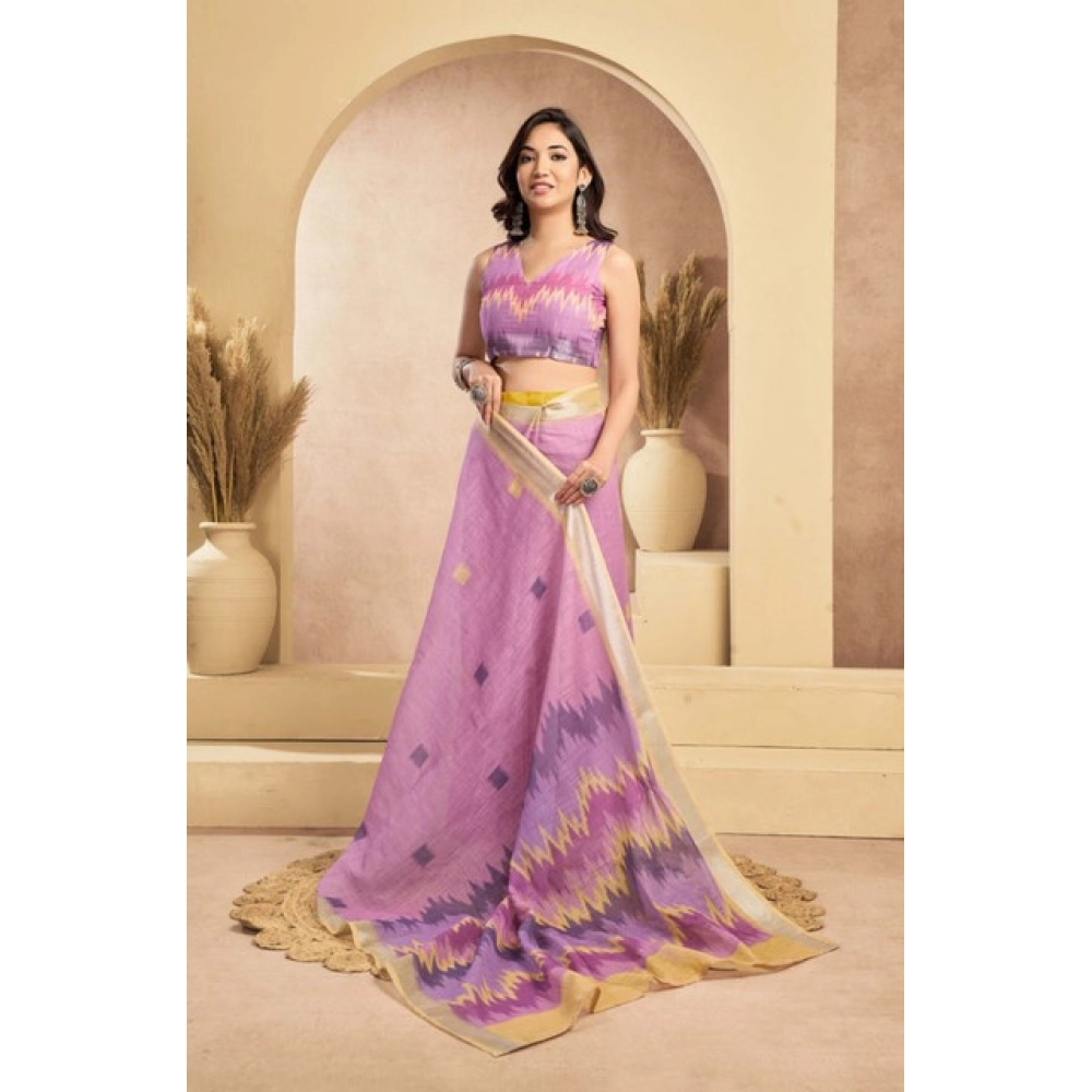 Women’s Faux Linen Floral Ready to wear Saree With Unstitched Blouse 5.5Mtr