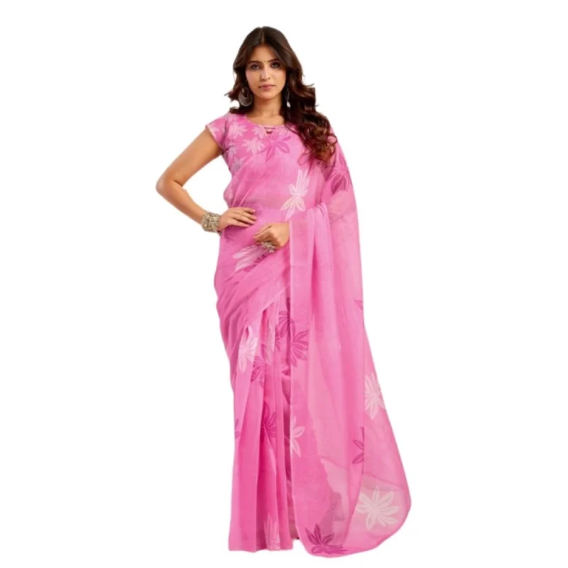 Women’s Faux Linen Floral Ready to wear Saree With Unstitched Blouse 5.5Mtr