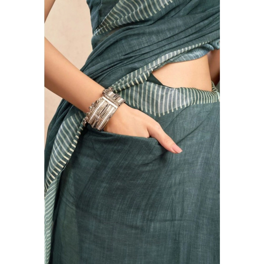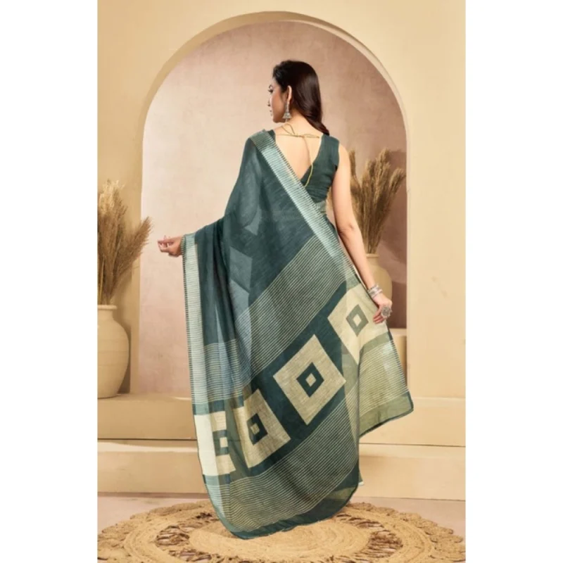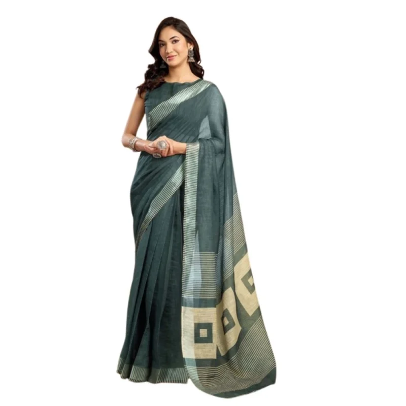 Women’s Faux Linen Floral Ready to wear Saree With Unstitched Blouse 5.5Mtr