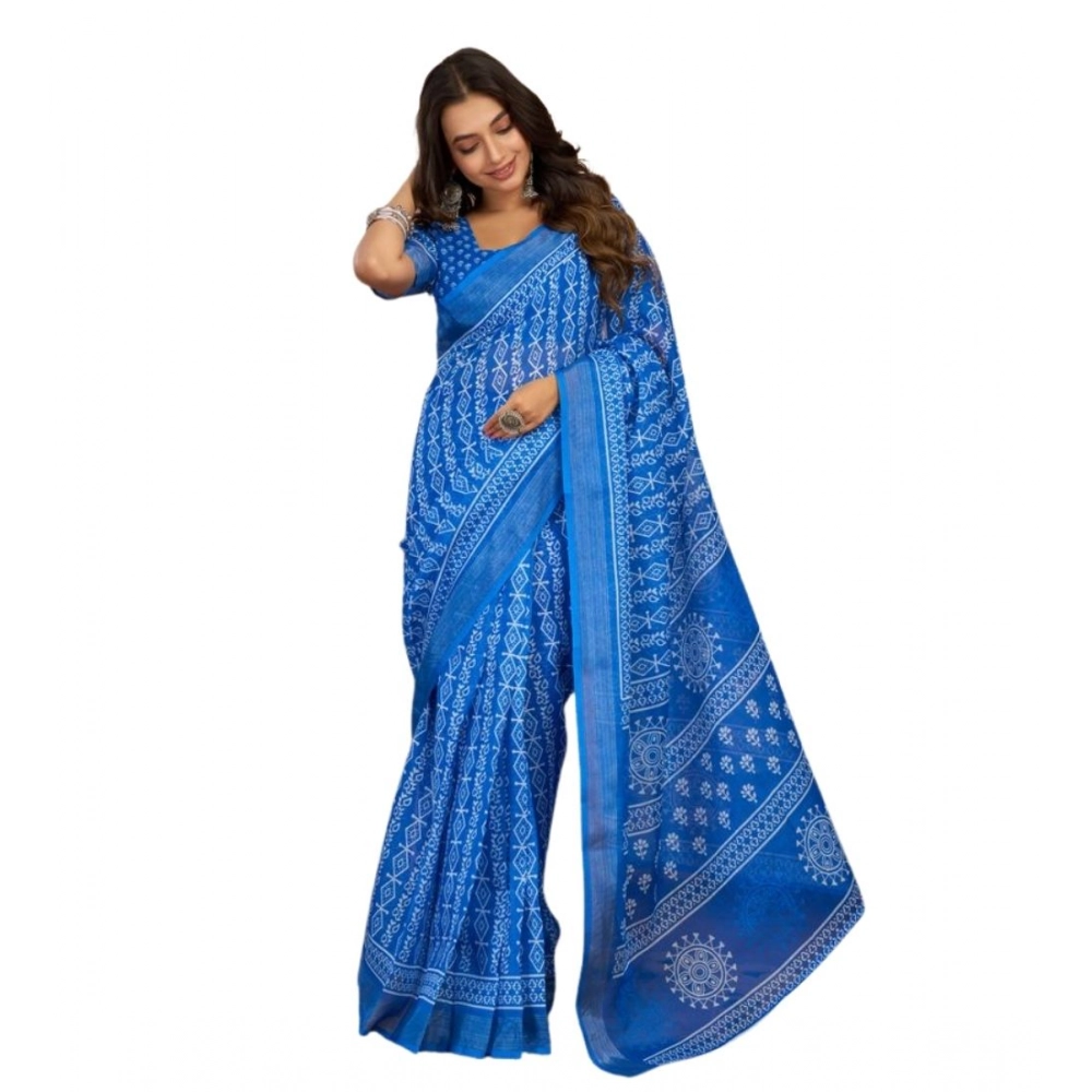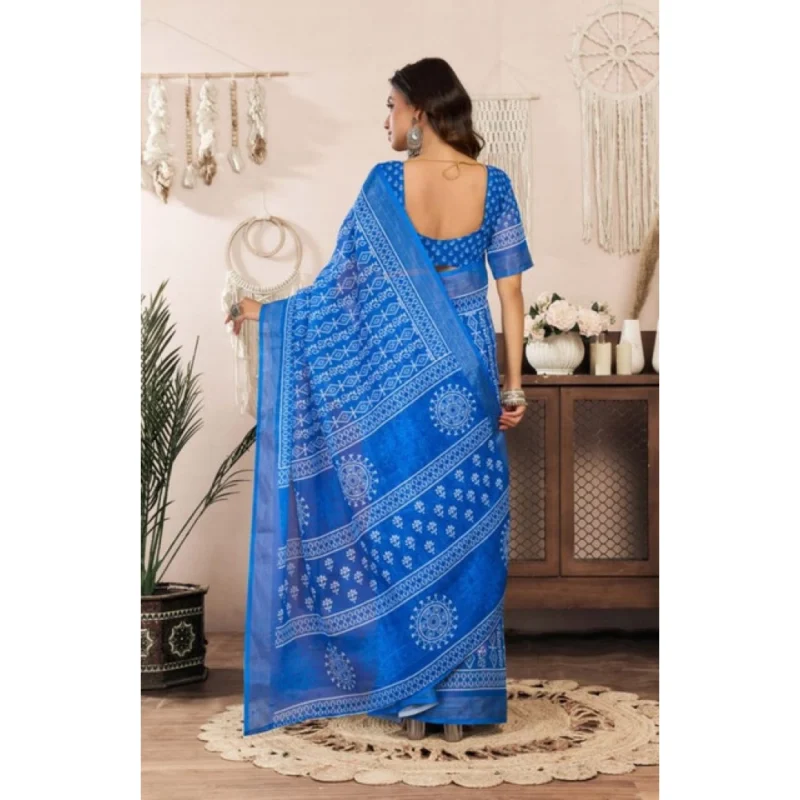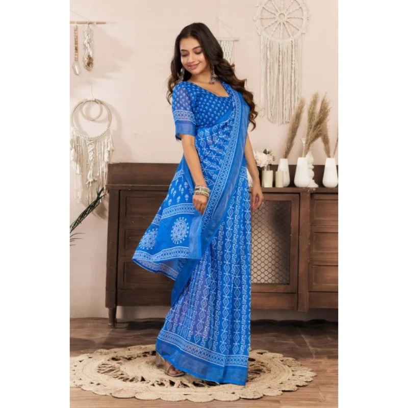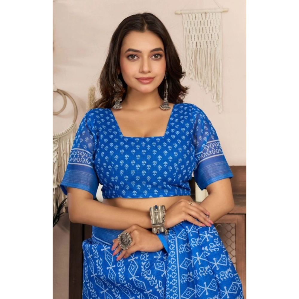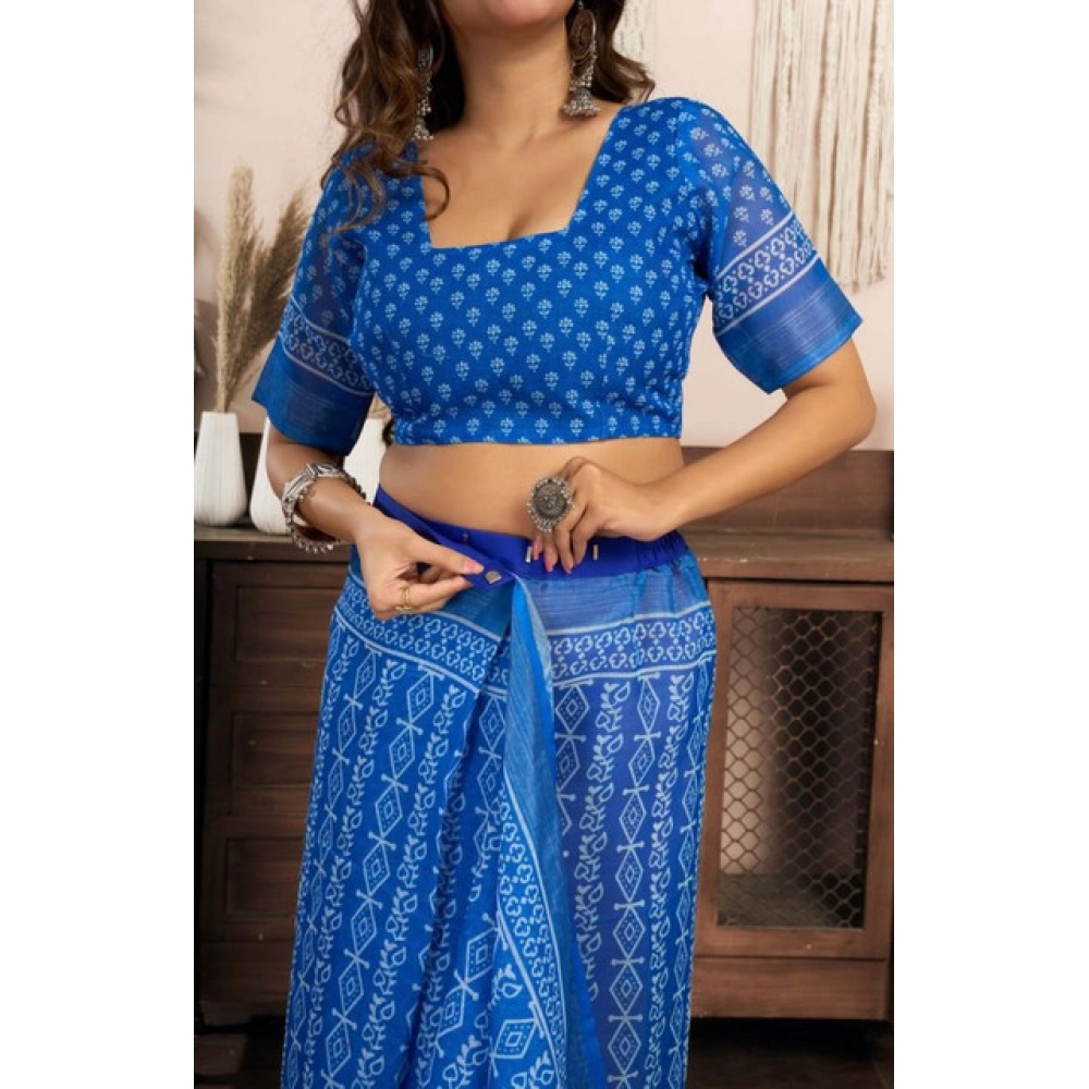 Women’s Faux Linen Geometric Print Ready to wear Saree With Unstitched Blouse 5.5Mtr