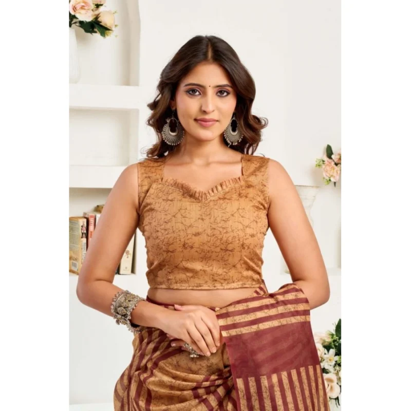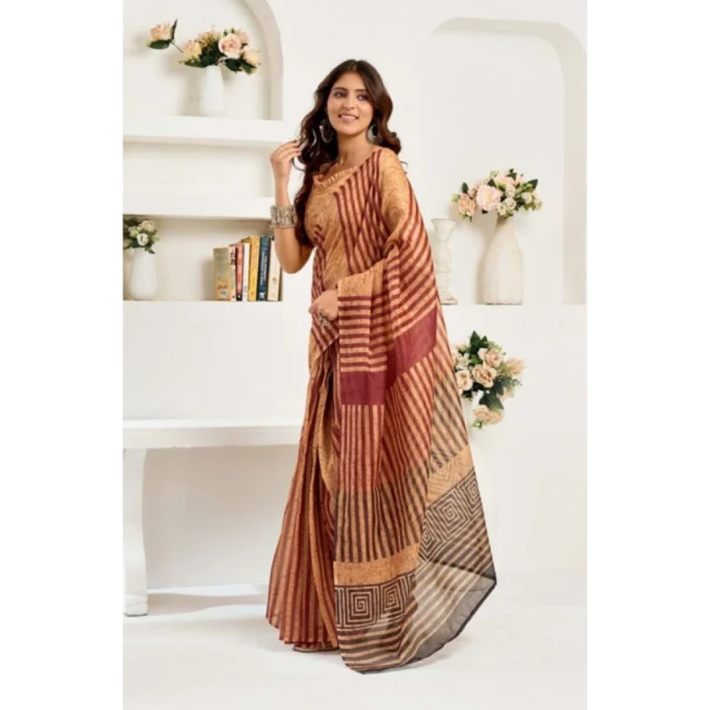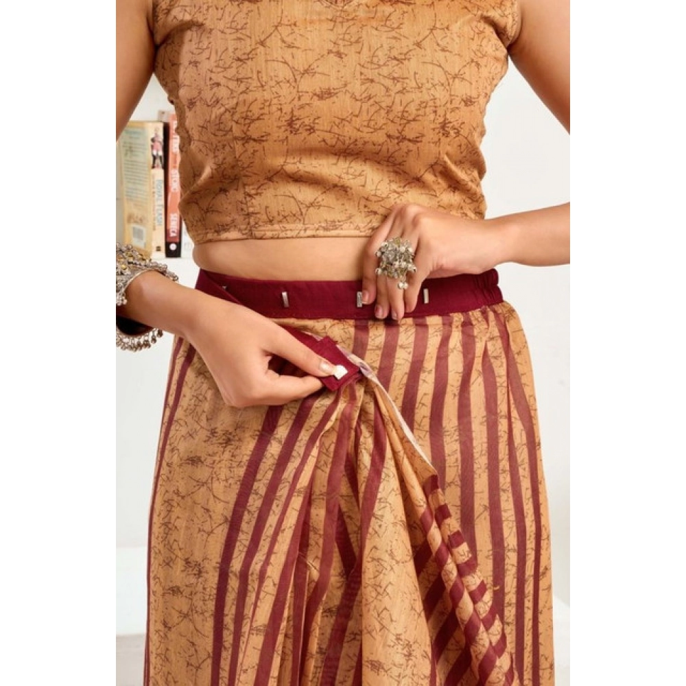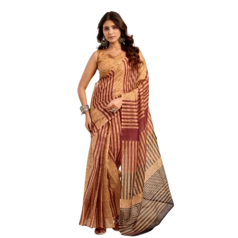 Women’s Faux Linen Geometric Print Ready to wear Saree With Unstitched Blouse 5.5Mtr