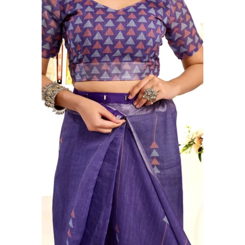 Women’s Faux Linen Geometric Print Ready to wear Saree With Unstitched Blouse 5.5Mtr (Purple)