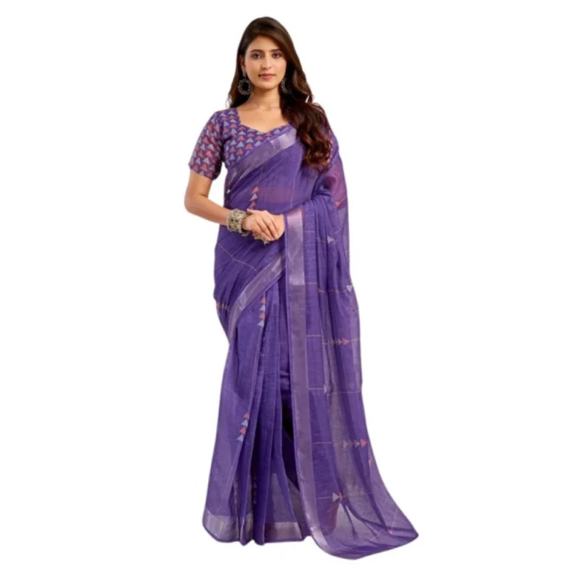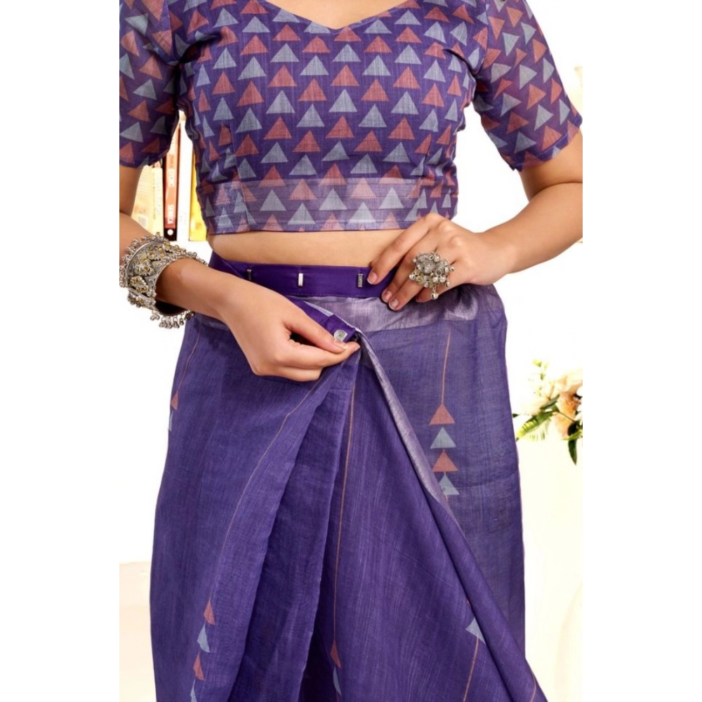 Women's Faux Linen Geometric Print Ready to wear Saree With Unstitched Blouse 5.5Mtr (Purple)